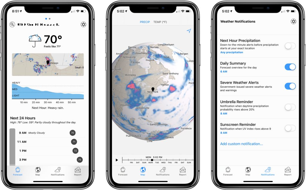 • Dark Sky was acquired by Apple and some features have been integrated into Apple’s native weather app, so it may not be available on all platforms.